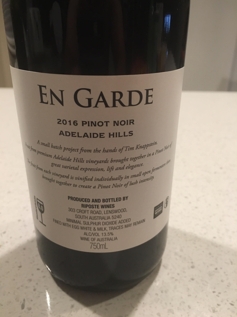 I found this Pinot to be spicy on the tongue to start but with an enduring intensity that is difficult to explain, not peppery more subtle spice.
